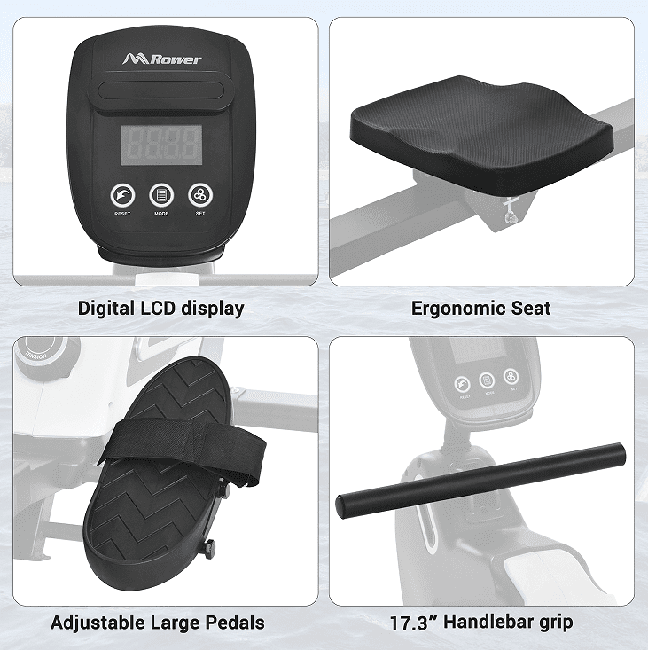 [Best Sports feel] This rowing machine is equipped with comfortable ergonomic cushions and handles, greatly enhancing the user's exercise experience. The wide pedal is designed in an adjustable form to better meet the personalized needs of different users.